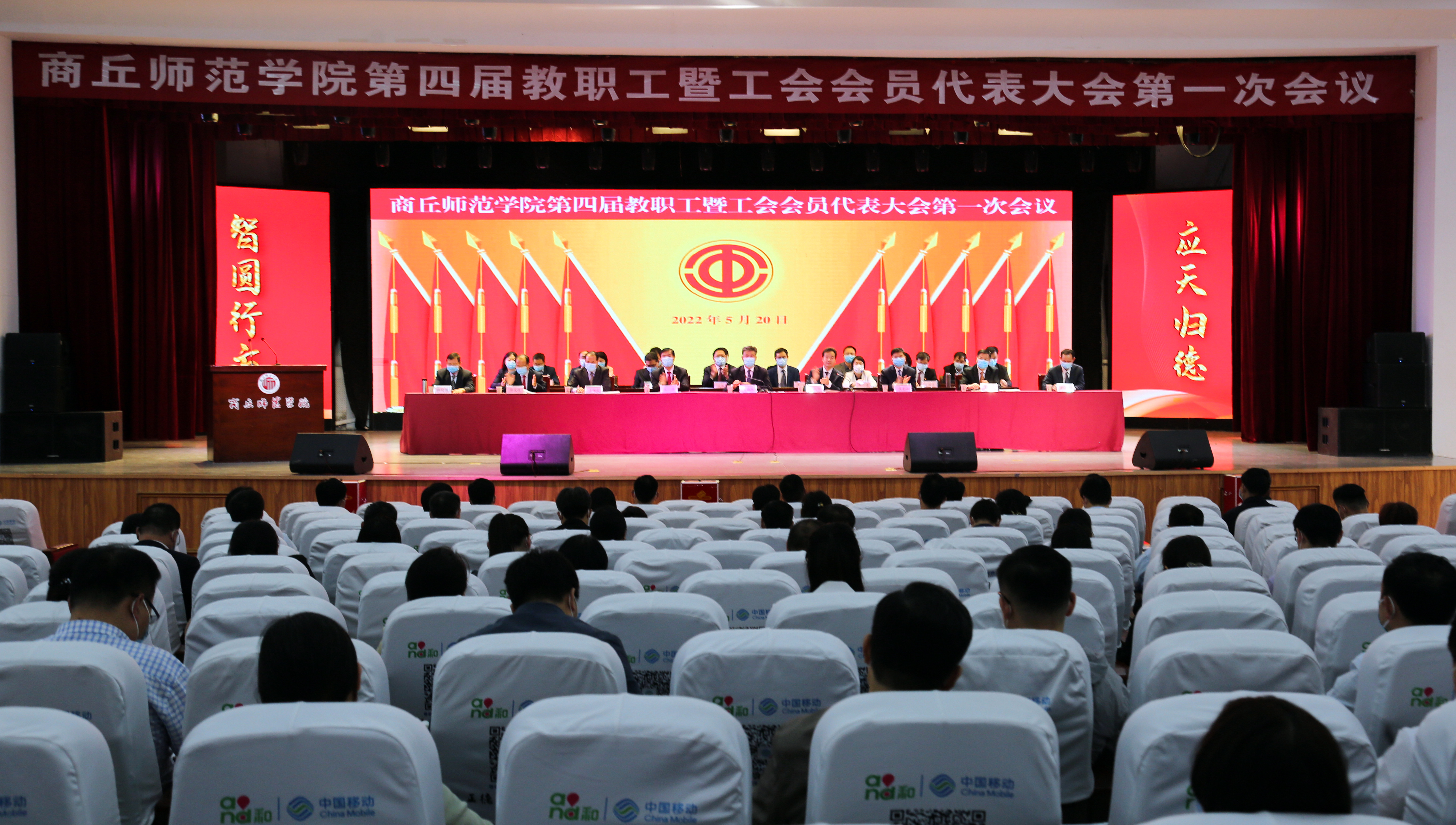 5月20日上午,新葡京官网第四届教职工暨工会会员代表大会第一次会议在睢阳校区大礼堂举行。校领导司林胜、陈向炜、朱伟、吴金山、辛作义、李永春、郭文佳、程功鹏、张箭出席,学校“双代会”全体正式代表、列席代表参加会议。大会由党委副书记吴金山主持。