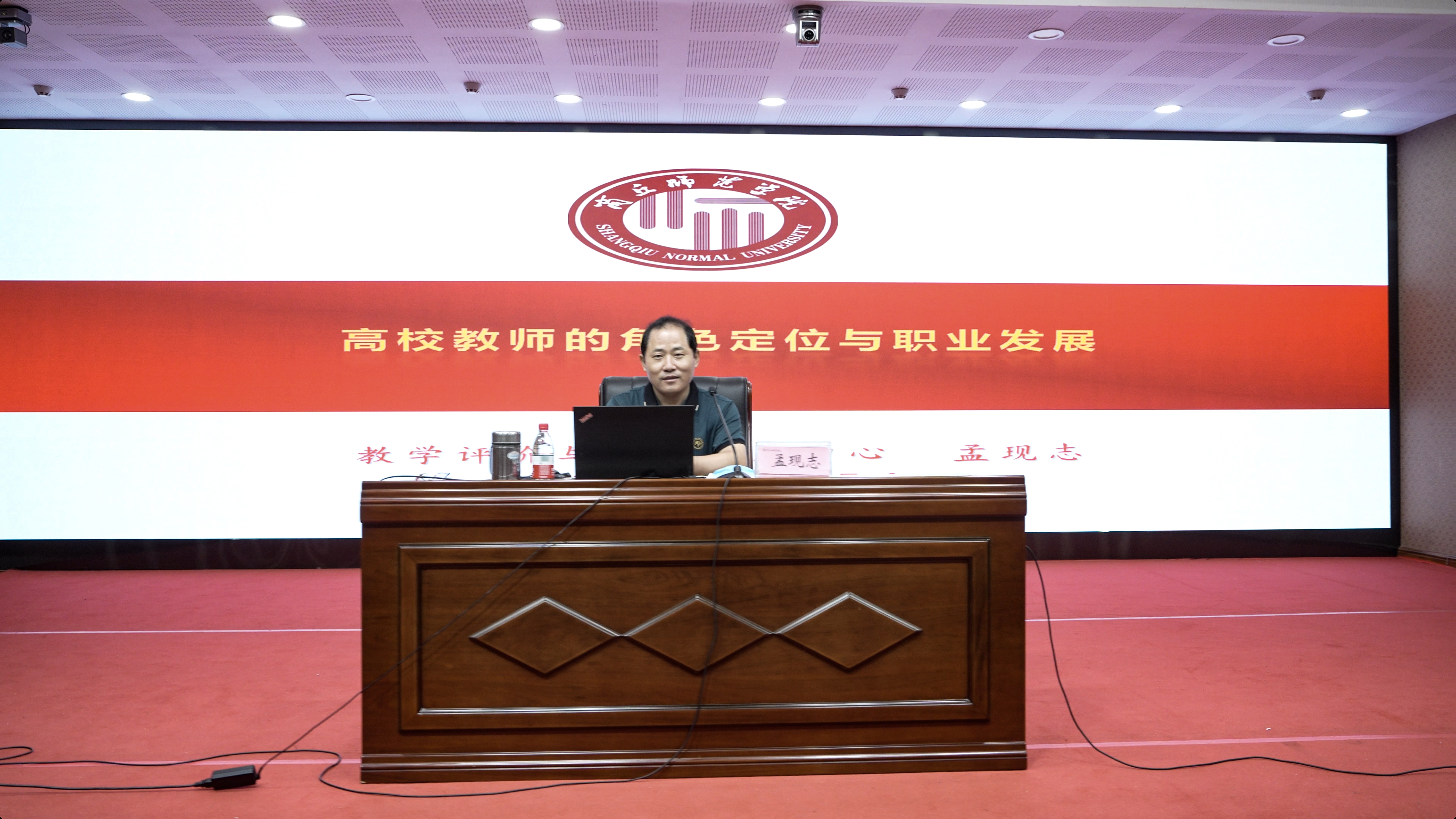 教学评价与教师发展中心主任孟现志教授以《高校教师的角色定位与职业发展》为题作专题报告,对新时期高校教师角色定位、工作职责、高校教育教学规律与职业发展目标及路径作了阐述,并建议青年教师合理规划个人职业生涯发展。