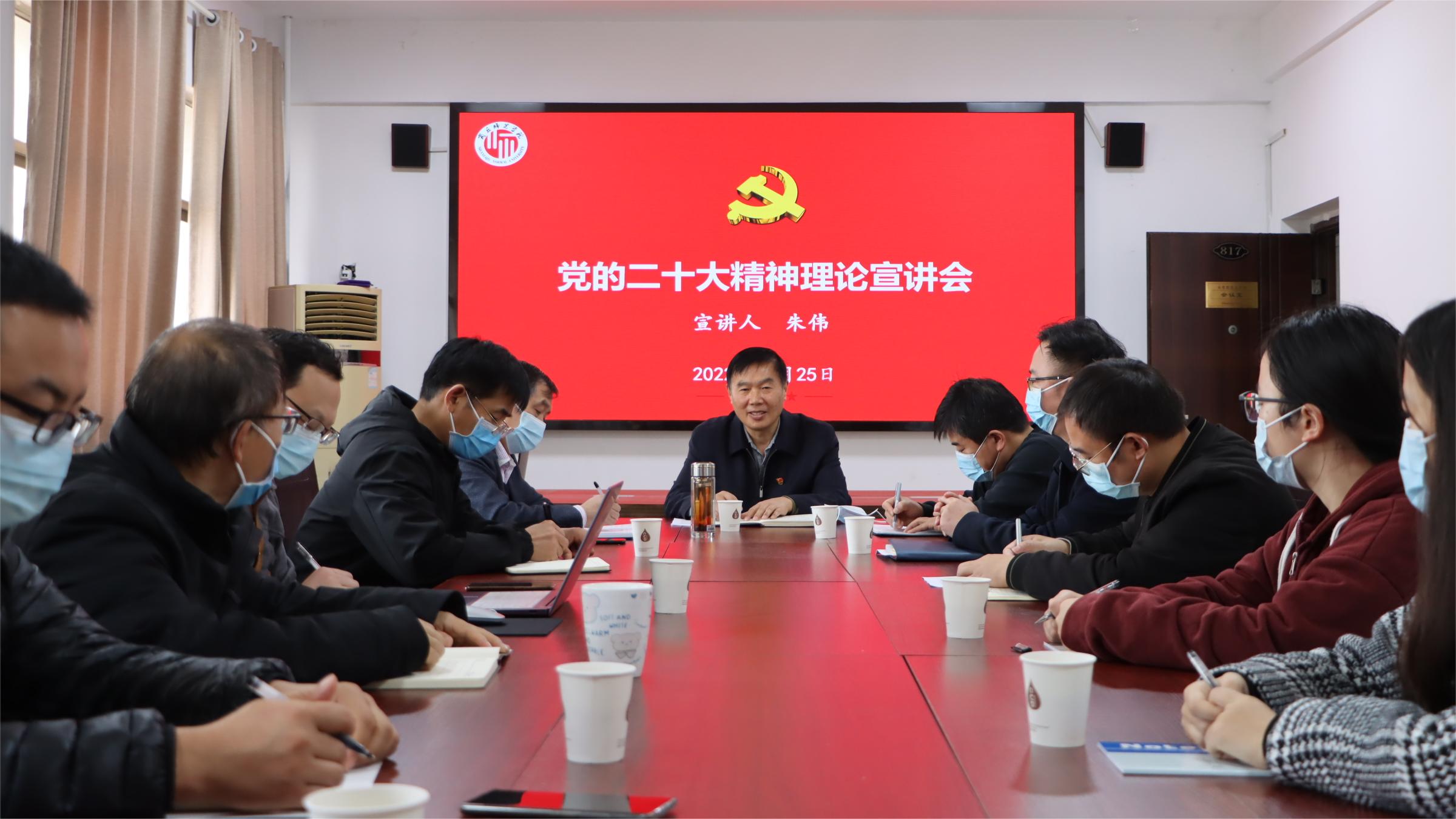 11月25日,校党委副书记、工会主席朱伟在梁园校区应天楼817会议室为马克思主义学院师生宣讲党的二十大精神。马克思主义学院领导班子成员、驻校值守教师和学生代表参加了宣讲报告会。