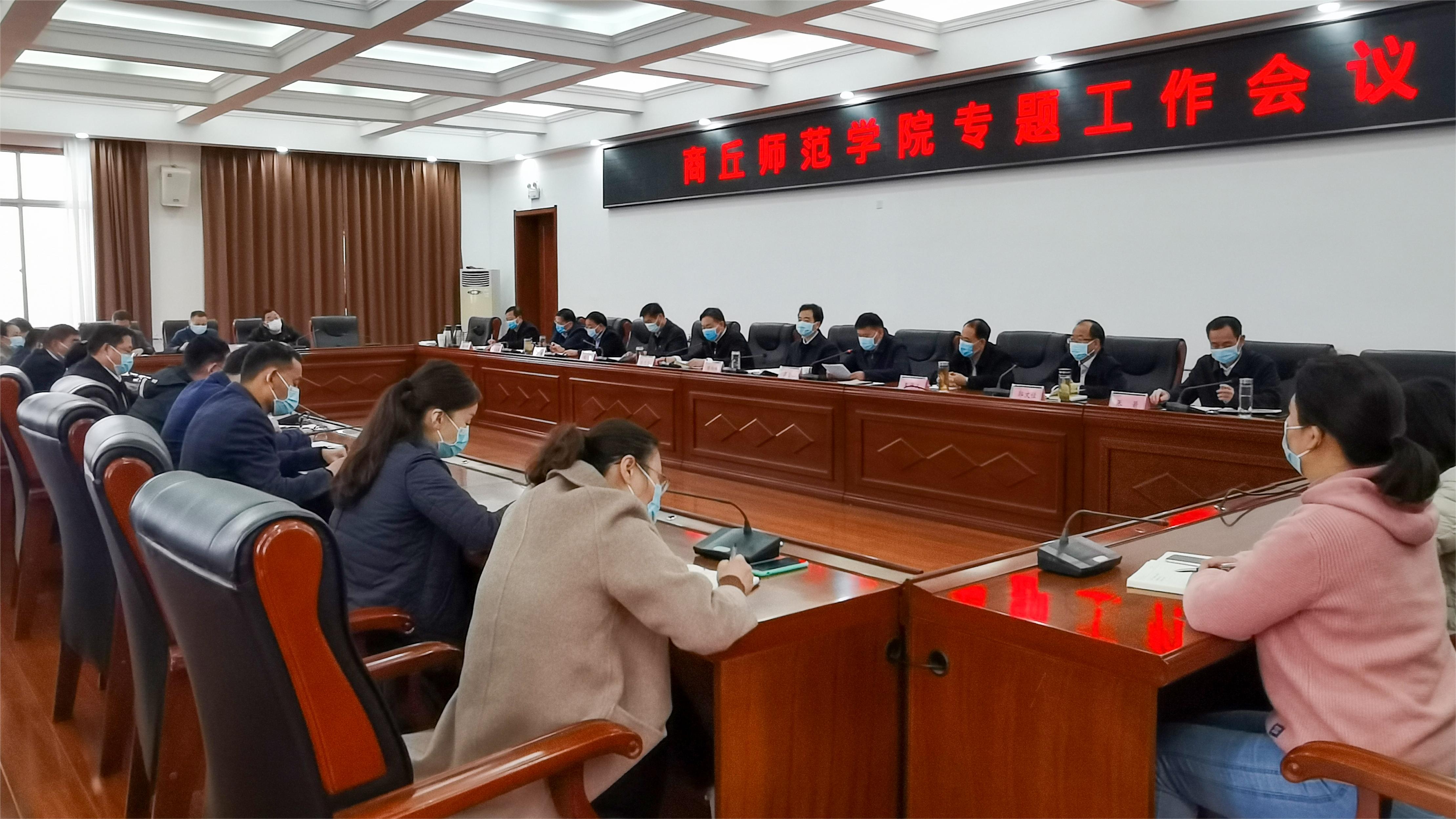 11月27日,新葡京官网在梁园校区归德楼419会议室召开专题工作会议,校领导张志坚、陈向炜、朱伟、吴金山、徐茂田、辛作义、李永春、郭文佳、程功鹏、张箭出席会议,有关部门、各学院主要负责人参加会议。校党委书记张志坚主持会议并讲话。