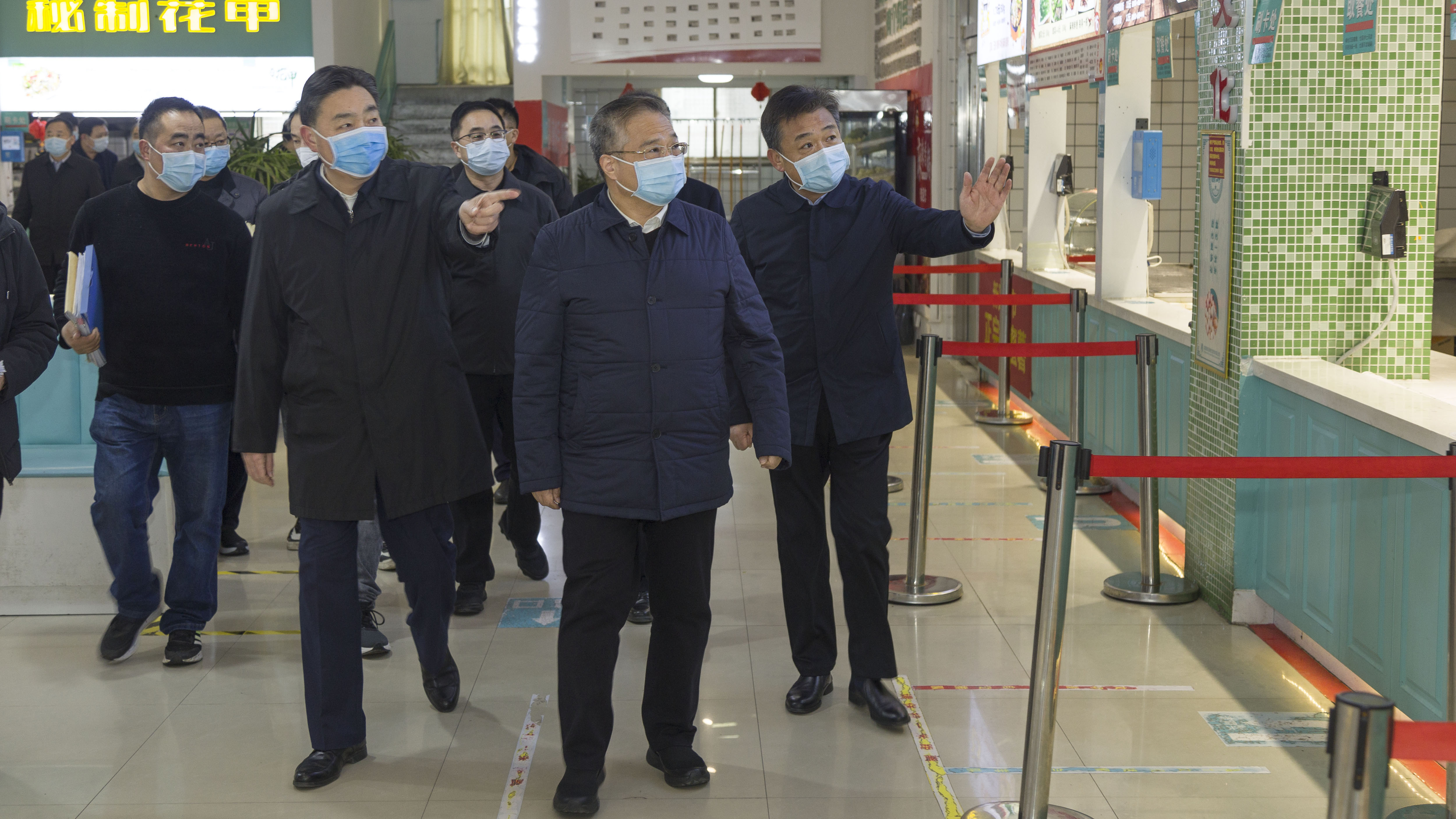 12月1日,商丘市委书记李国胜到新葡京官网梁园校区调研校园食品安全工作。校党委书记张志坚、校长陈向炜,商丘市领导王金启、梁万涛、岳爱云,副校长郭文佳,商丘市教体局、卫健委、市场监管局,校后勤服务中心等部门负责同志陪同调研。