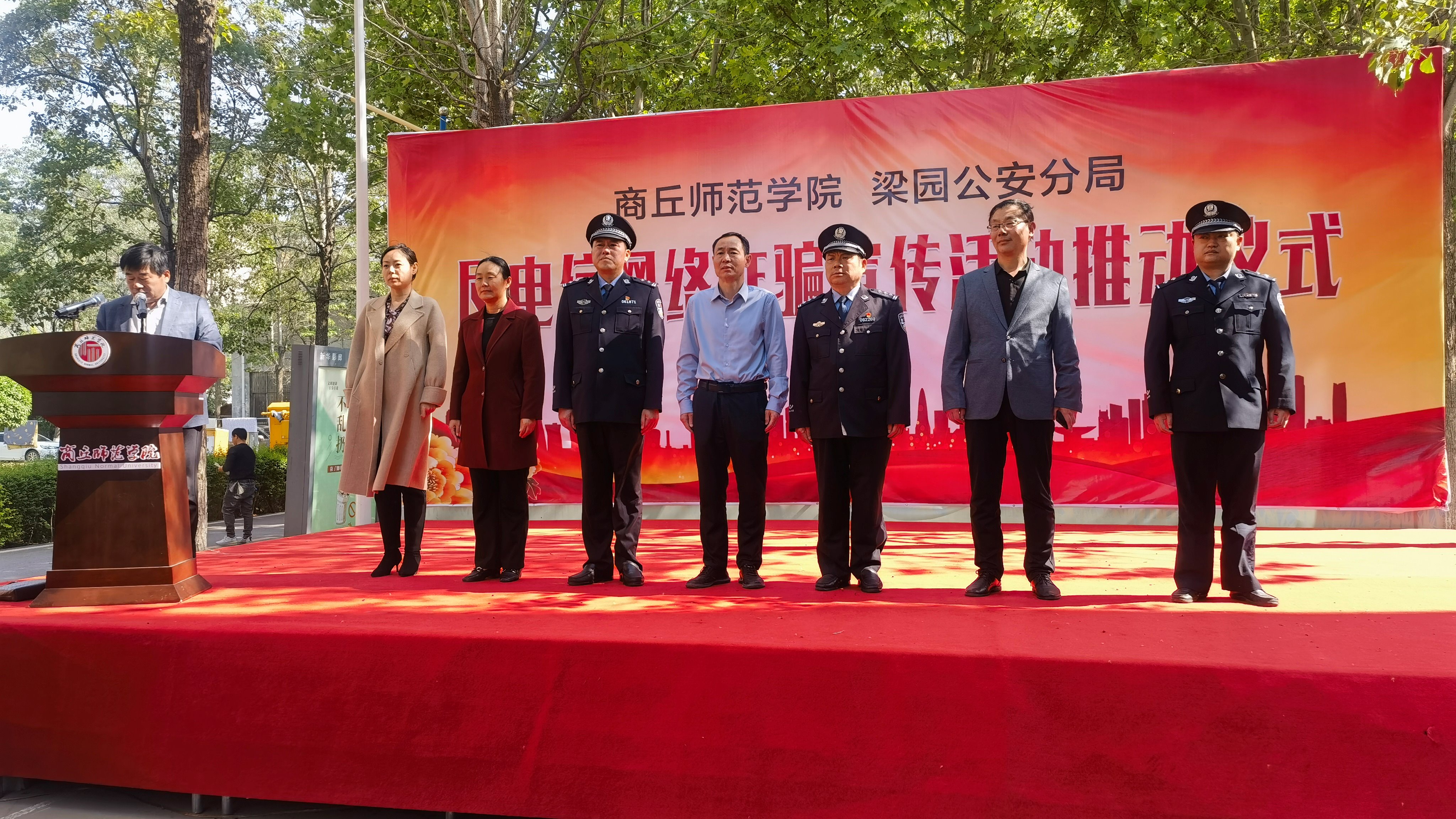 为预防、遏制电信网络诈骗活动在校园发生,切实维护广大师生员工生命财产安全,4月27日,新葡京官网与梁园公安分局联合举行反电信网络诈骗宣传活动推动仪式。副校长张箭、梁园公安分局副局长王立福出席活动,平原派出所所长王成文、梁园公安分局反诈中心主任侯峰,新葡京官网党委宣传部、学生处、校团委、保卫处主要负责人和新葡京官网200余名师生参加活动。