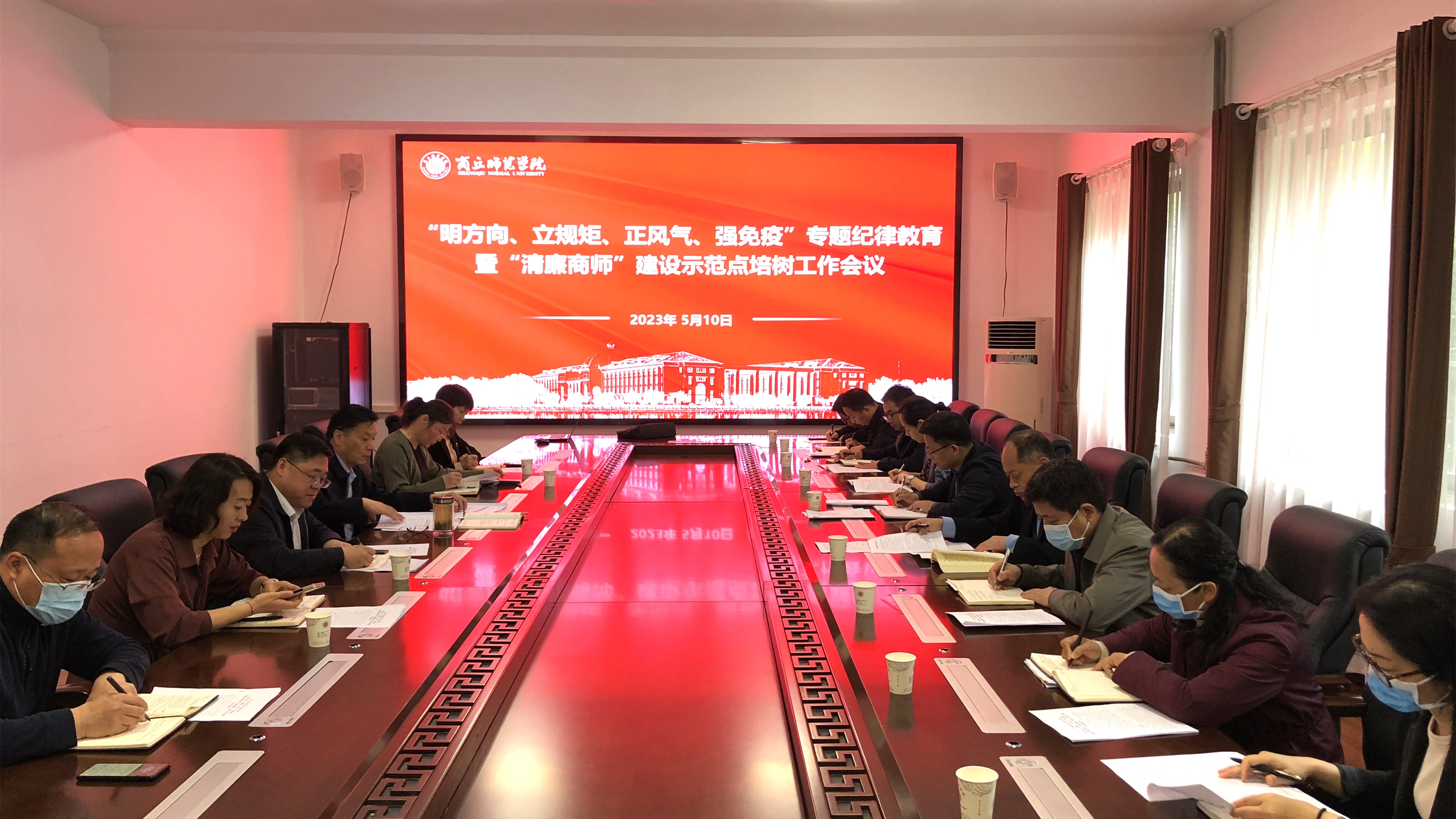 5月10日,新葡京官网召开“明方向、立规矩、正风气、强免疫”专题纪律教育暨“清廉商师”建设示范点培树工作会议,校纪委书记、监察专员李永春主持会议并讲话,强调要深入学习贯彻习近平总书记关于严明党的纪律和规矩的重要论述,充分发挥清廉建设示范引导作用,推动“清廉商师”创建工作扎实深入开展。