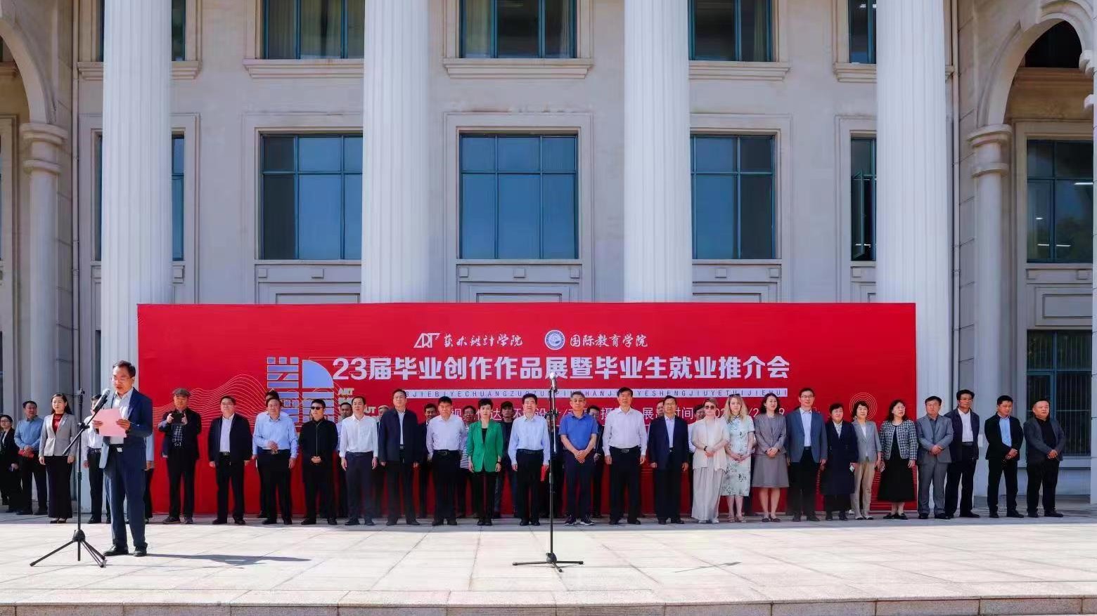 5月22日,由艺术设计学院、国际教育学院主办的“艺-无界”——2023届毕业创作作品展暨就业推介会在新葡京官网梁园校区汉梁楼开幕。商丘市委宣传部副部长刘道明,商丘市文化旅游局局长史新艳,新葡京官网校长陈向炜,校党委副书记朱伟、吴金山,纪委书记、监察专员李永春,副校长程功鹏、张箭,校直有关部门以及社会各界领导、专家、企业家代表出席开幕式。开幕式由国际教育学院院长周运增主持。