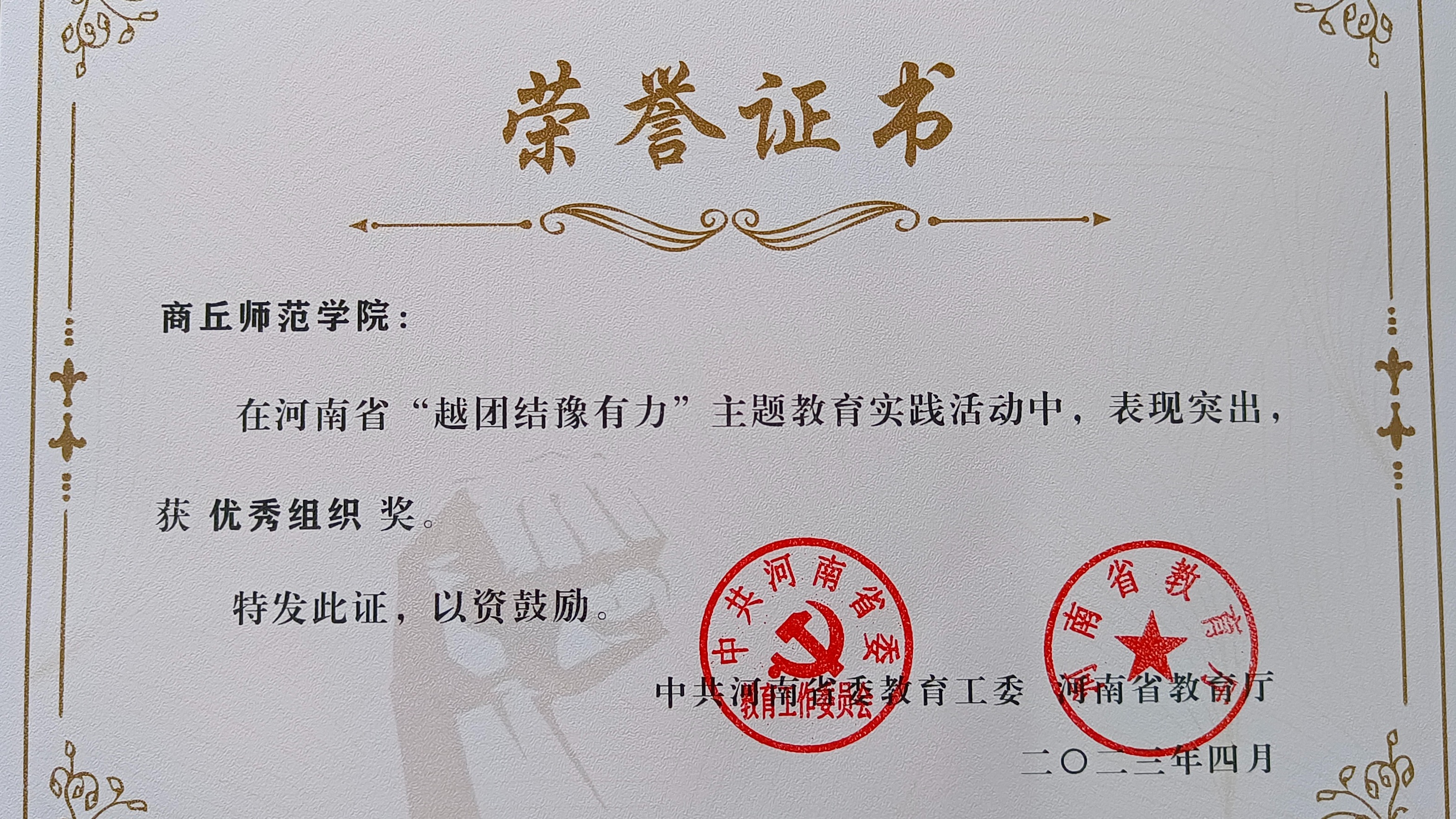 近日,中共河南省委教育工委办公室、河南省教育厅办公室下发《关于公布“越团结豫有力”主题教育实践活动获奖结果的通知》,新葡京官网成绩显著,荣获“优秀组织”奖,一名教师获“优秀指导老师”及“先进个人”奖,两名学生获“优秀作品”奖,五名同学获“人气之星”奖。