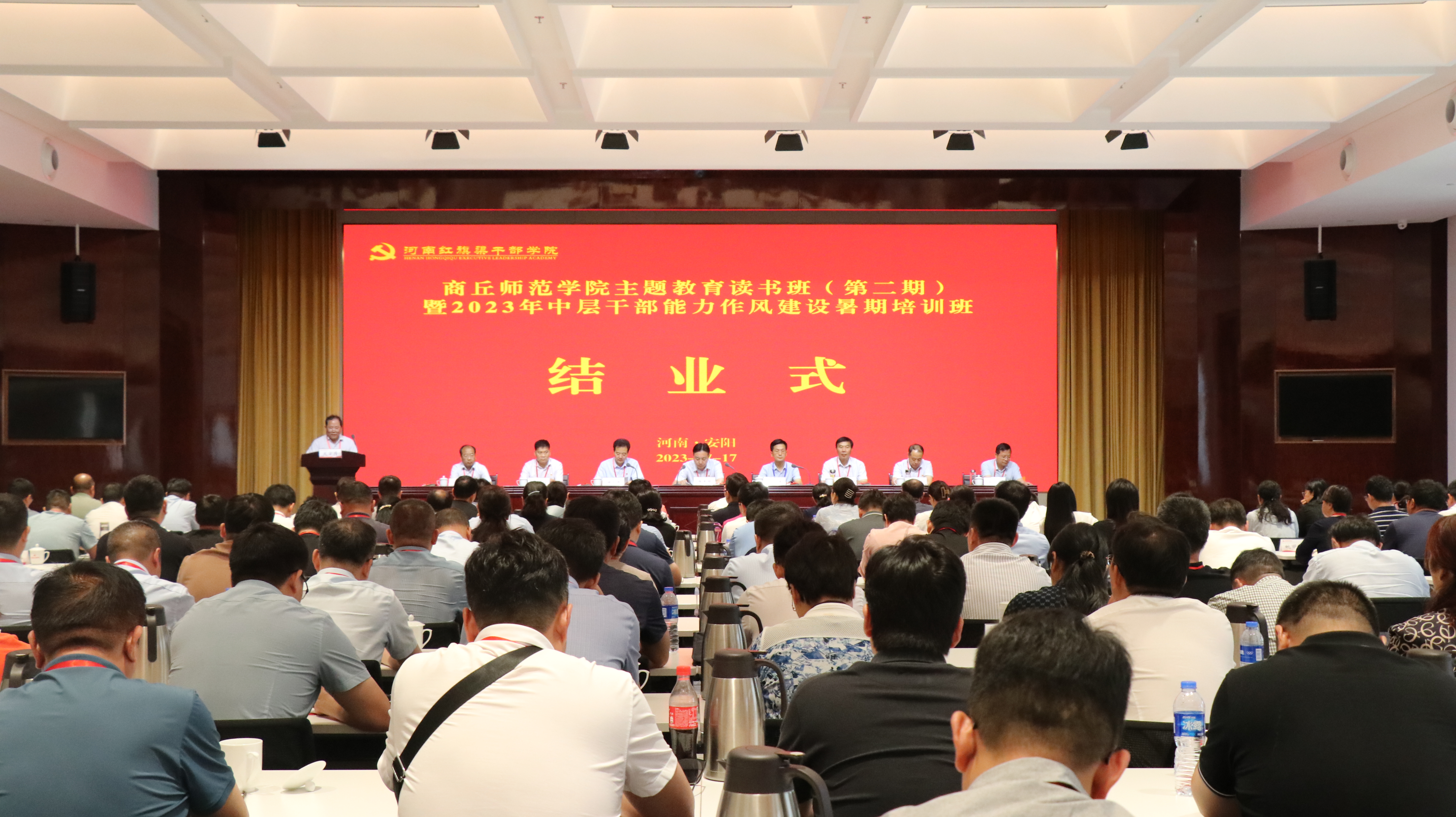 7月17日,新葡京官网主题教育读书班(第二期)暨2023年中层干部能力作风建设暑期培训班结业式在河南红旗渠干部学院举行。校领导和红旗渠干部学院党委委员、副院长刘树伟出席结业式,全体受训学员参加了仪式。党委书记张志坚讲话。校长陈向炜主持。