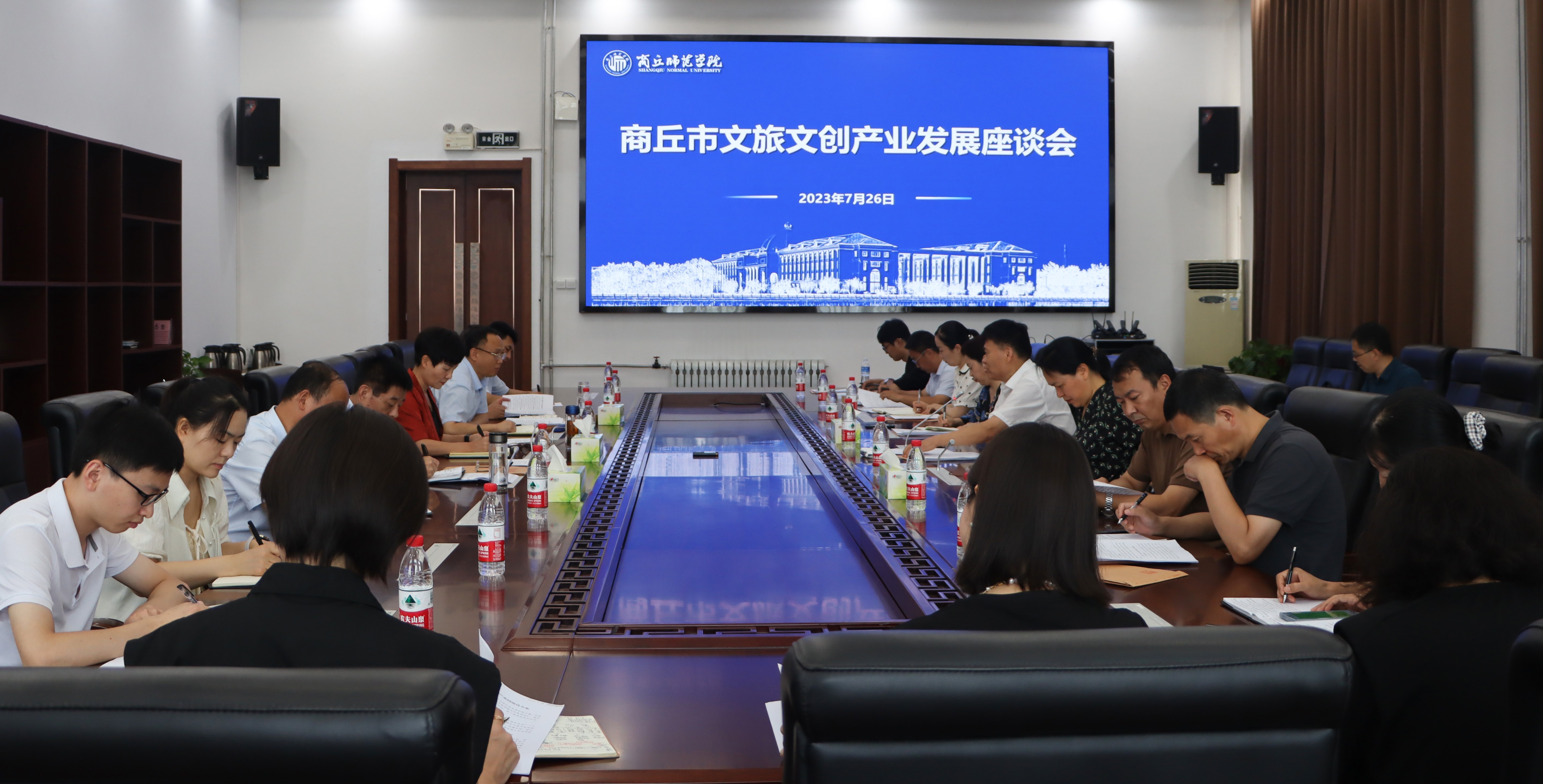 7月26日,商丘市文化广电和旅游局与新葡京官网联合举行文旅文创产业发展座谈会。市文化广电和旅游局党组书记、局长史新艳,局党组成员路通、董健、常青、韩建华出席会议,校党委副书记吴金山,校地合作与服务中心、人文学院、传媒学院、音乐学院、美术学院、艺术设计学院等单位负责人和教师代表参加座谈会。