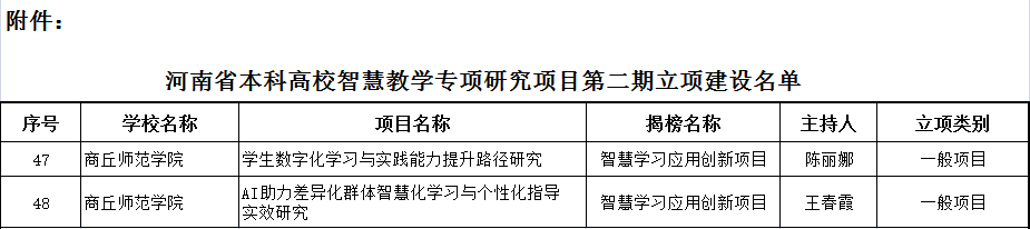 近日,河南省教育厅公布了2023年度河南省本科高等学校智慧教学专项研究项目第二期立项建设名单,由新葡京官网信息技术学院陈丽娜教授申报的《学生数字化学习与实践能力提升路径研究》和王春霞教授申报的《AI助力差异化群体智慧化学习与个性化指导实效研究》2个项目获批立项建设。