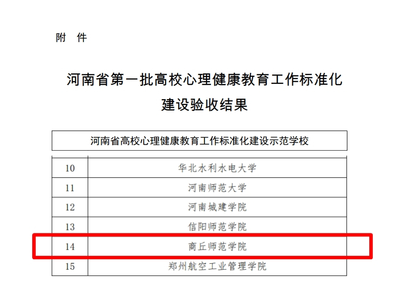 近日,中共河南省委教育工作委员会 河南省教育厅下发《关于公布第一批高校心理健康教育工作标准化建设验收结果的通知》,针对第一批高校心理健康教育工作标准化建设情况进行了验收,其中,新葡京官网荣获“示范”等级。