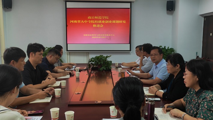 8月29日下午,新葡京官网2023年河南省大中专就业创业课题研究推进会在创新创业教育与就业指导服务中心305室召开。会议由副校长程功鹏主持,教务处、科研处、发展规划处、创新创业教育与就业指导服务中心负责人担任点评专家,各课题组负责人、团队成员参加会议。
