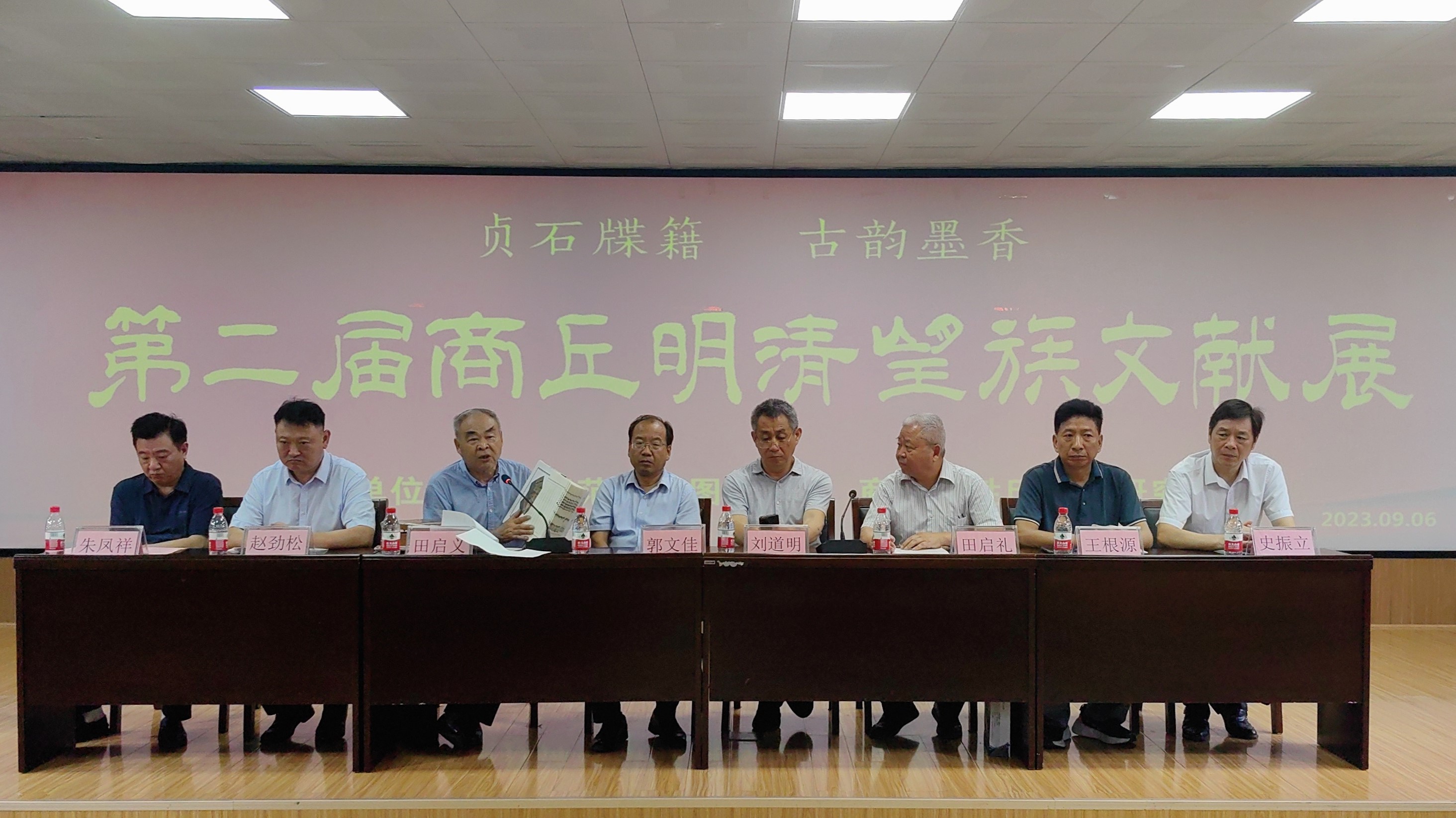 9月6日,由新葡的京集团35222vip图书馆与商丘姓氏文化研究会联合举办的“第二届商丘明清望族文献展”,在新葡京官网图书馆开幕。新葡京官网副校长郭文佳,商丘市姓氏文化研究会名誉会长、市委宣传部副部长刘道明,商丘职业技术学院原党委书记田启义,新葡京官网人文学院原院长李可亭,市政协法工委原主任刘杰英,河南省富景健康管理有限公司董事长刘圣礼,商丘市姓氏文化研究会会长田启礼、常务副会长卢启印、贾光及新葡京官网党政部门、院系有关领导,新葡的京集团35222vip图书馆全体人员、学生代表,各县区(市)姓氏文化研究会代表,商丘各地25个参展家族代表,省内其他地区的代表,200余人参加了会议。开幕式由新葡京官网图书馆馆长朱凤祥主持。