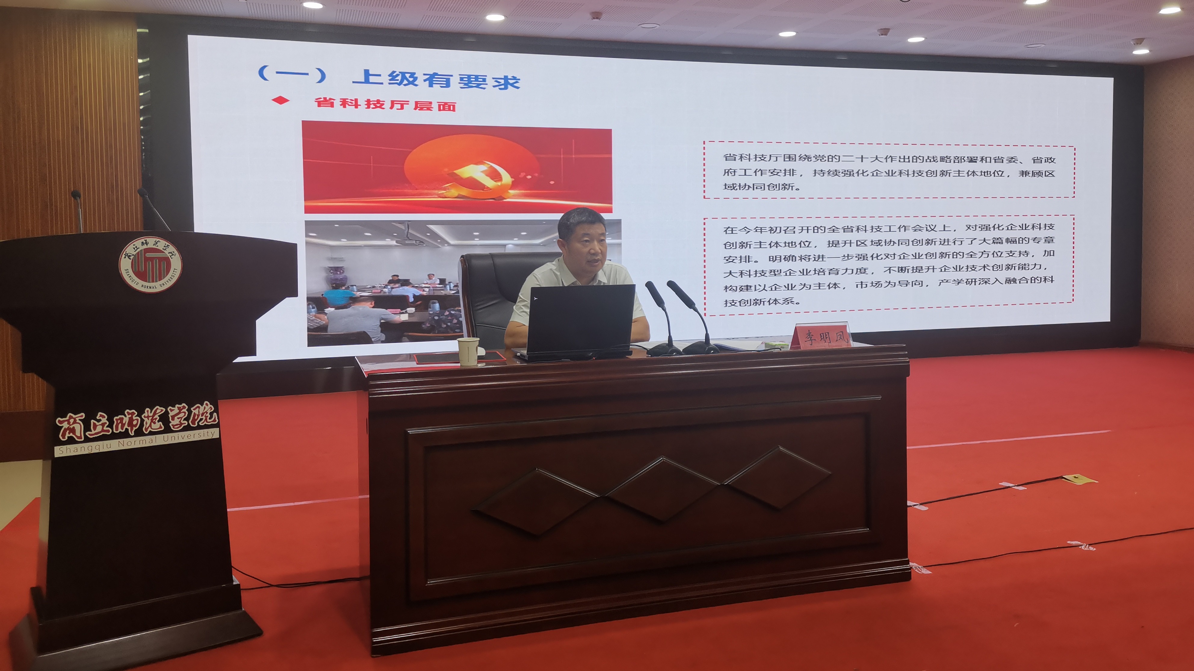 河南省科技厅科技企业与现代服务业科技处李明凤处长以《强化企业创新主体地位推动科技惠企政策落实落地落细》为题,从为什么要落实惠企政策、怎样落实各项惠企政策、省市如何互补衔接等三个方面,阐释了“万人助万企”暨规上工业企业研发活动全覆盖、创新型企业梯次培育、科技金融、创新创业等方面的具体政策和申报条件等。