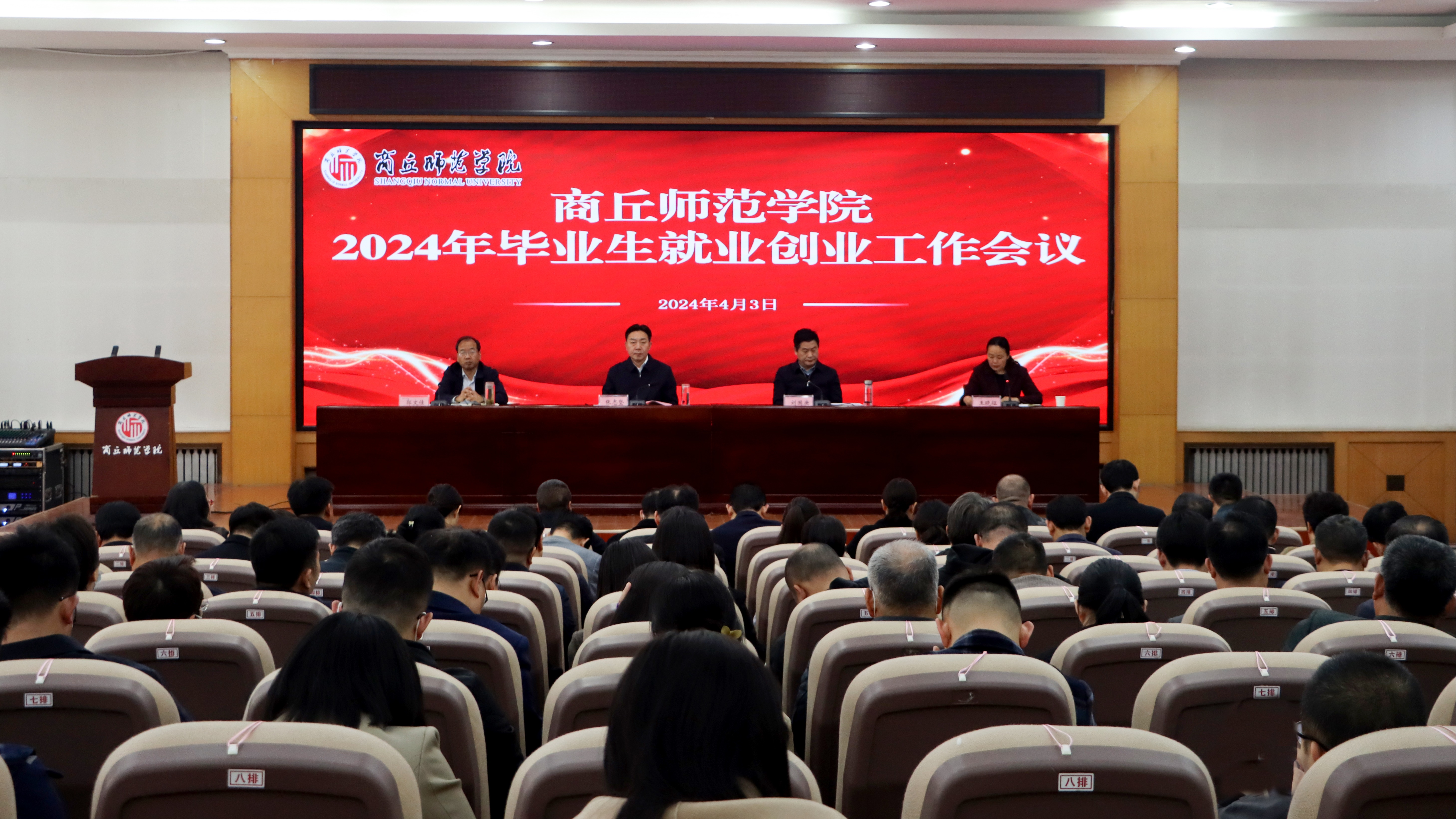 4月3日,新葡京官网在梁园校区召开2024年毕业生就业创业工作会议。校领导张志坚、刘国庚、郭文佳、王晓征出席会议。校党委副书记刘国庚主持会议。