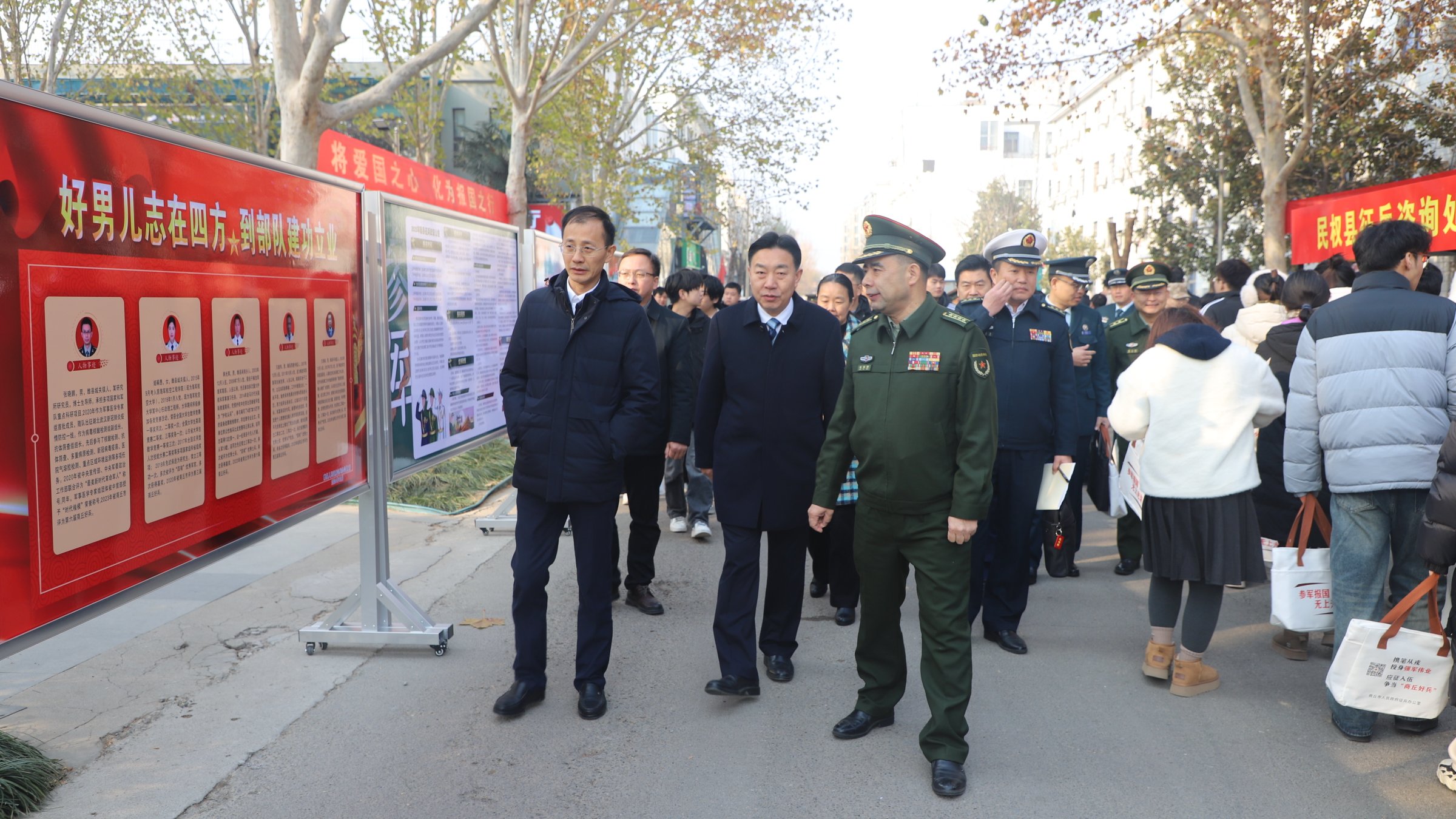 12月25日,商丘市“征兵宣传进校园”活动在新葡京官网睢阳校区大礼堂举办。商丘市副市长袁道强、商丘军分区司令员赵伯桥、辖区7所普通高校和2所技工类学校分管领导等出席活动。本活动为商丘市2025年征兵工作营造了浓厚的氛围,搭建了良好的平台。新葡京官网学生处(武装部)将持续开展系列活动,激发广大青年学生的参军报国热情,努力为国家、军队和社会培养更多高素质高学历人才,为强国强军事业贡献商师力量。