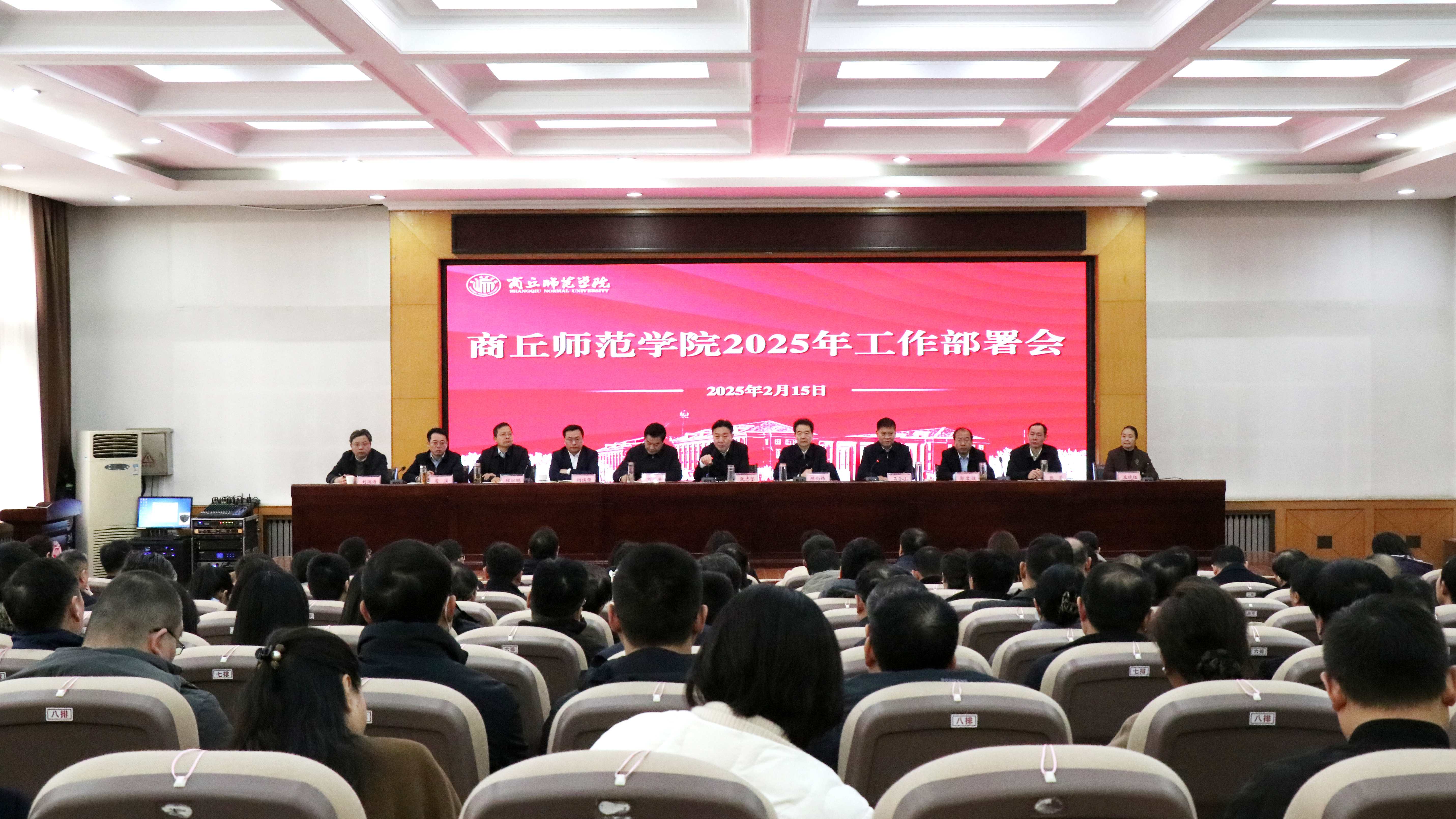 2月15日,新葡京官网在梁园校区归德楼召开2025年工作部署会议。学校全体中层干部,高层次人才、团干部和辅导员代表参加了会议。全体校领导出席了会议。